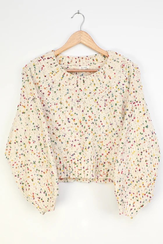 Lulu's Sweetest Treat Cream Multi Confetti Chenille Knit Sweater