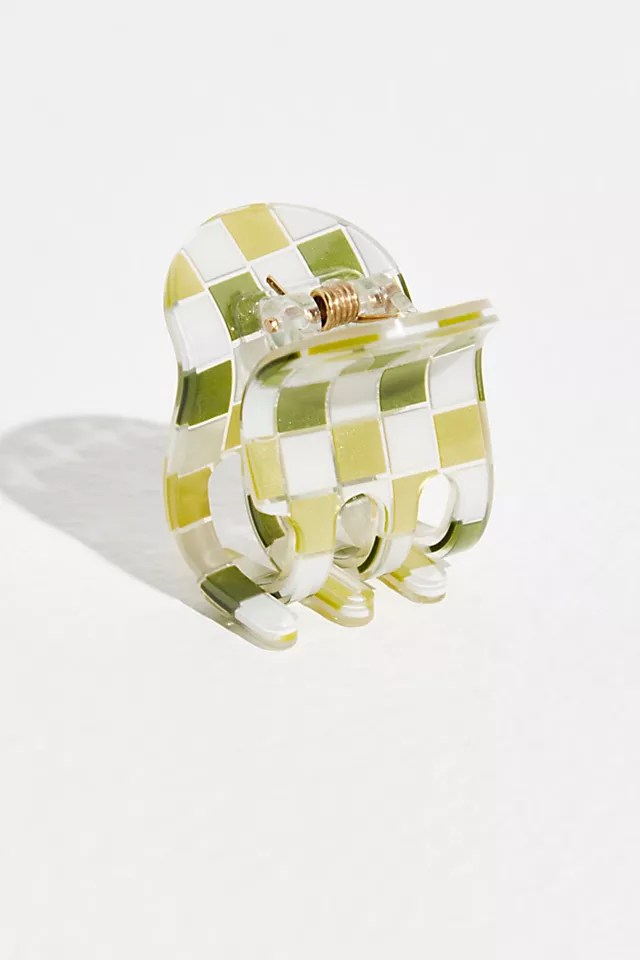 This classy mosaic clip ($8) in a coordinated green tone will hold your hair back all night. Part it down the middle and slick it back into a bun in true 2021 style.