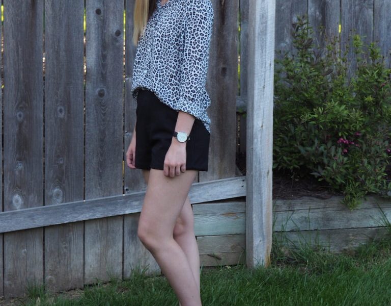 When going more subtle with the makeup it’s fun playing around with different patterns in the outfit. Here, I have paired a black and white leopard print shirt with plain black shorts and ballet flats.