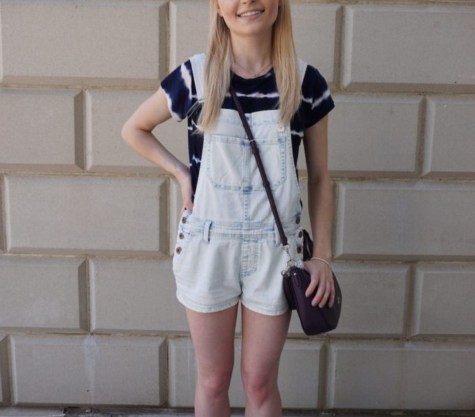 I have always loved comfortable street style, so for this outfit, I chose to wear overall shorts. The overalls are worn over a dark blue tie dye shirt to add some fun to my outfit. Crop tops fit perfectly under the overalls. But what is an outfit without the perfect shoes? I added my favorite pair of street sneakers that are sufficient for walking around. Accessories are important for any outfit. By wearing my favorite pair of sunglasses and adding jewelry, the outfit was complete. Handbags are always a necessity when I plan out any outfit. I chose one of my favorite Coach bags to set the outfit into place, choosing a darker purse to complement the light wash overalls.