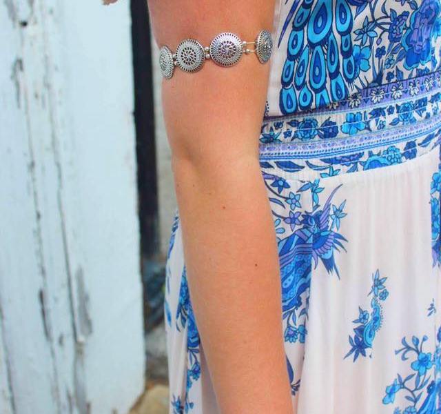 This dress is from Free People, one of my favorite stores. I love Free People because they bring the prettiest boho styles to life. The best part of this dress is that it is a very thin material and feels very light on your body. It’s perfect for the hot summer sun! The dress flows beautifully, and it looks so graceful as you walk. It’s so easy to throw on and spice up with all your favorite jewelry. I styled it with bracelets that I decided to transform into arm cuffs, which was so simple. I absolutely live for gaudy rings, so I thought these beautiful turquoise beauties were perfect.