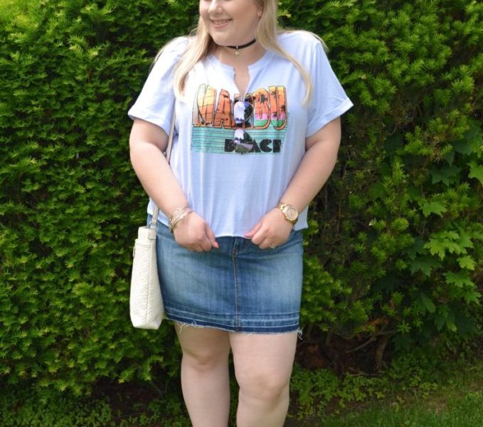I was super excited to see that denim skirts are in style again but also a little nervous because I wanted to be able to wear them without worrying if I could pull it off. I love the look of crop tops and high waisted skirts so I decided to try it out for myself. Thankfully, Forever 21 has an amazing plus-size section at an extremely affordable price! For this outfit, I paired a high waisted denim skirt with an oversize graphic crop top, along with low tan wedges.