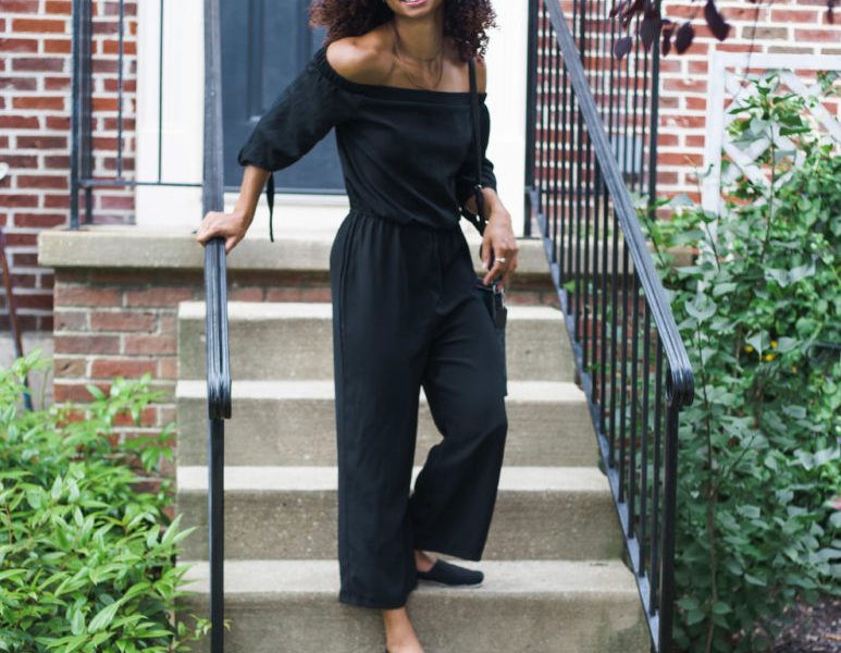 3—All-in-one outfit. With only a few minutes to spare, you need something that slips right on and can be worn anywhere, anytime. A romper or a jumpsuit is perfect for this; you can easily dress it up, (or down) and have a full outfit in just a few seconds. Match with some slip-on shoes and a shoulder bag, and now you can finally get out the door.