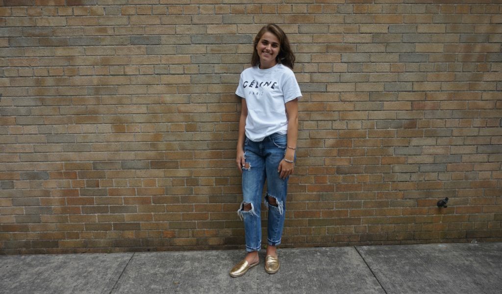 Looking at this outfit, I love how this Fashionista’s styled a more relaxed look. The Céline T- Shirt and the metallic slip-on flats add the perfect touch to this casual outfit. I feel like boyfriend jeans are such a big trend because of how effortless they are. Whenever I create a look with boyfriend jeans I always try to pair them with a tighter-fitting top. That way I am not drowning in clothing.