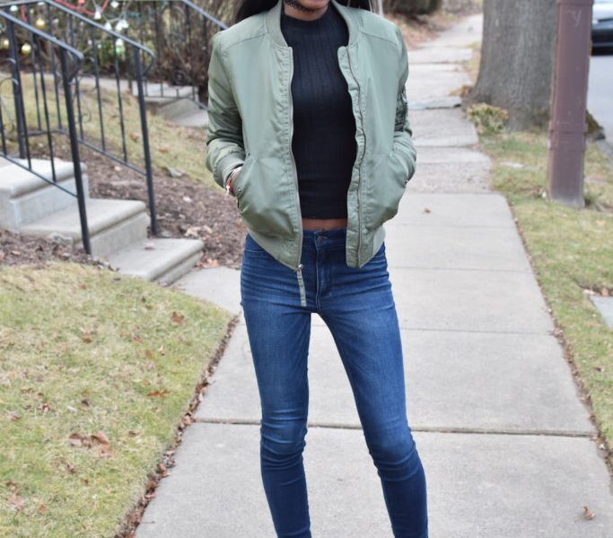 Another thing to love about this outfit is that it can survive without the bomber. Underneath her jacket, our Fashionista sports a cold shoulder crop top that hugs her figure and shows off just the right amount of skin. When you’re on the move during these colder months, it is important that your outfit can hold its own with or without whatever killer coat or jacket you are rocking!