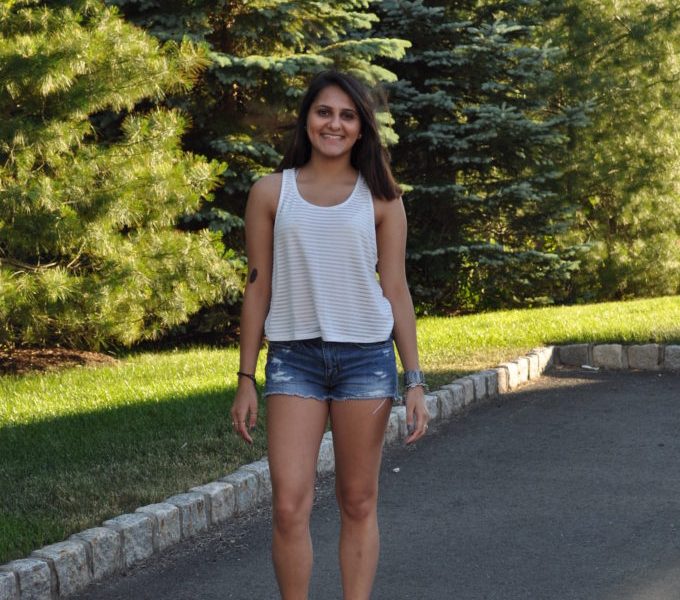 So how does one wear this trend? Check out this Fashionista’s look for inspiration! A simple white t-shirt is all you need to complement your bold pair of denim. Your denim should be the center of attention in your outfit and thus you should tone down your top. A classic monotone striped pattern will add a little flare to your outfit without totally overpowering your patched denim. This Fashionista’s striped leather sandals pay homage to the ’70s vibe of her shorts. Her shoes as well as her statement bracelets perfectly complete her look.