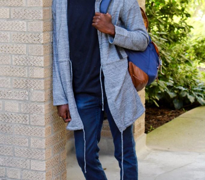 This Fashionisto’s ensemble shows a great way to wear this trend to class. He pairs this awesome knit parka from ASOS with a basic black T-shirt and blue jeans. His black combat boots are both practical and trendy plus the silver hardware help to accent his glasses and necklace. This Fashionisto’s Benrus backpack not only holds all his necessities for class, but also adds a casual flair to his entire look.