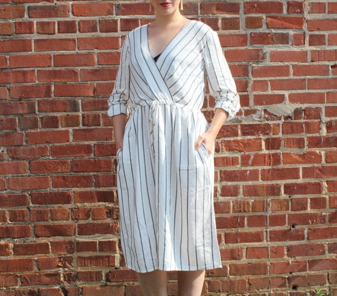 The stripes make this dress timeless and classy. I love that this Fashionista kept the look versatile. The deep neckline makes it sexy, but the sleeves and length of the dress make it appropriate for wearing in public. Another great thing about the neckline of this dress is that you can easily safety pin it up to make it more conservative or let it open and use it as a beach coverup. Check out the sleeves! They are perfect for covering your shoulders from the damaging sun rays!