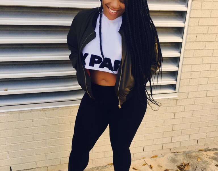 The Ivy Park crop top worn by this Fashionista is very clean cut and very now with its graphic, monochromatic lettering and silhouette. She then paired this crop top with an olive bomber jacket  and classic black sport leggings to give contrast to showcase the crop top and the statement that it makes.