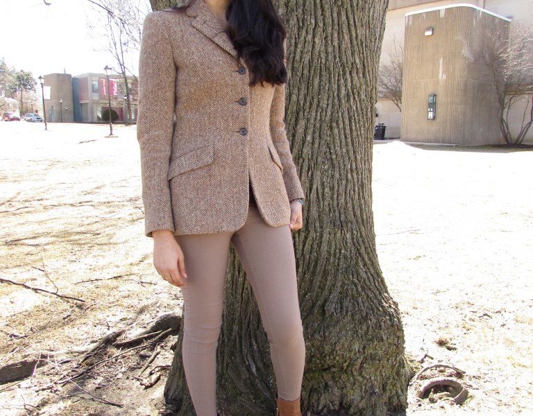 The Fashionista then paired her blazer with some skinny khaki pants. The pants were the perfect counterpart, as the blazer’s relaxed fit skimmed the Fashionista’s hips, while the pants showed off her long, lean legs.