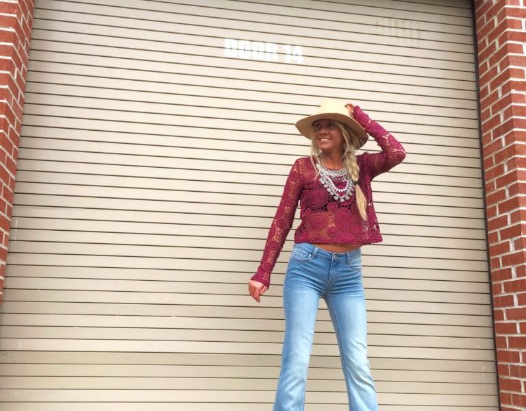 If you have a pair of bell-bottoms just folded up in your closet but not sure how to pull them off, just take a look at this Fashionista’s take on the jean that has everyone talking! This Fashionista paired her bell-bottoms with a long sleeve maroon lace top with a chunky bohemian necklace with some slip-on clog heels! She threw her hair in a loose side braid and topped it off with a wide-brimmed hat for an element of boho-chic!