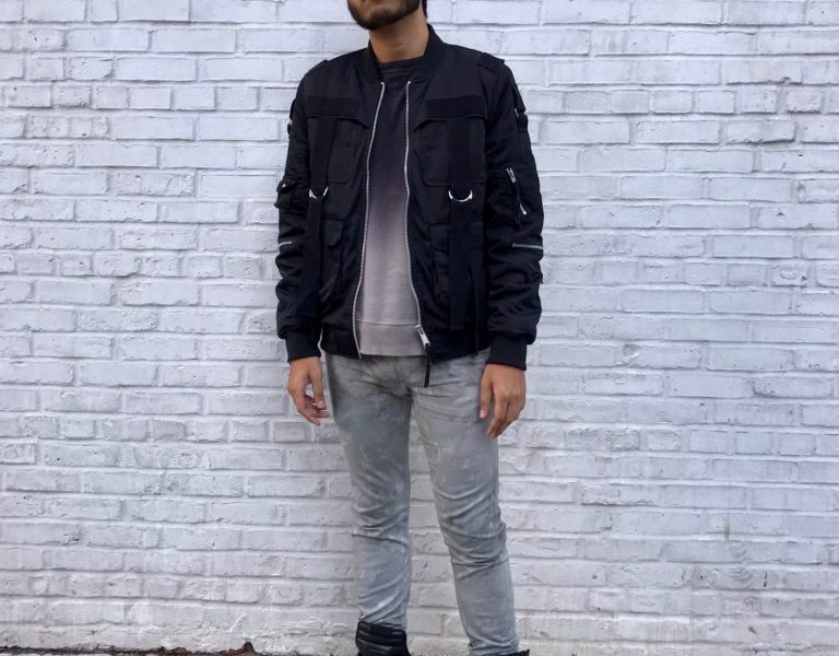 Incorporating both form and function in an outfit requires careful planning of putting different pieces together. As the bomber jacket on this Fashionisto adds a bit of warmth to complete his outfit, it definitely has a practical function for being there, however, its straps and pocketless sleeve zipper details add no particular function. These intricate details are  solely aesthetically pleasing, which may not seem sensible at first, but all in all the extra details add to the outfit to tie the functional pieces together stylishly. This aspect of the look comes full circle with curved leg jeans he has on. These exhibit aesthetically pleasing, unique form without compromising functionality too much to be sensible to wear. The way they stack on the lower leg is a result of the designer denim’s signature tight tapering from the knee down, which makes it seem as though they’re difficult to wear comfortably. However, when they are paired with a basic sweater and high-top sneakers, they are definitely wearable.