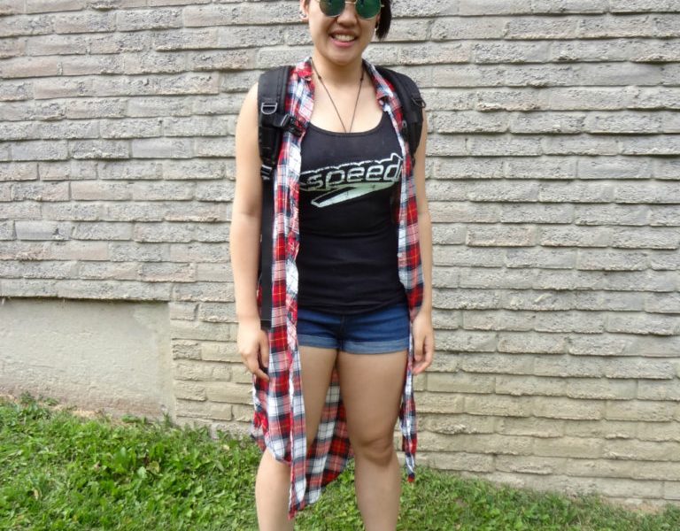 Spotted this Fashionista at a local pokestop, her outfit is primarily red in colour to represent her chosen Pokemon Go Team, Team Valor. She wears a red sleeveless plaid tunic with a side slit from Bluenoses. The lightweight material has a drapey cut, allowing the shirt to flow gracefully as you walk, which is a perfect piece for layering in summer. The basic Speedo tank top and the denim shorts, from Forever 21, are also the essentials for a two-in-one sporty chic look.