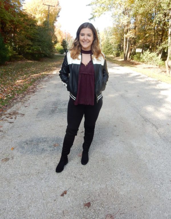The last trend this Fashionista is wearing is a leather jacket with a white color block. Leather is a staple in an edgy girl’s wardrobe. The white color block makes this jacket really unique and kind of reminds me of a varsity jacket. Leather jackets are definitely not a trend, they are a classic.