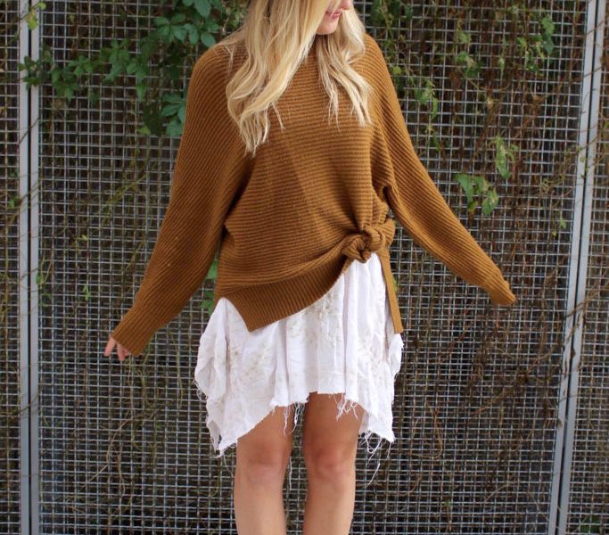 This Fashionista says, “I like to take different seasonal pieces from my closet and create easy outfits that are adaptable for the weather. I think layering the wintery sweater over a summery dress creates a fun, fall look with a boho twist. You’d be surprised with what all you can come up with by pairing different pieces in your closet!”