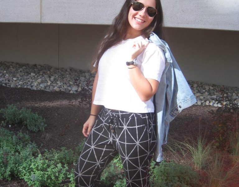 With the temperature continuously dropping, this Fashionista knows she has to stay warm while walking to class and also be prepared for stuffy classrooms. Her light wash jean jacket adds the perfect touch to her look while also being functional. If you’re like me and can’t seem to ever get to class on time, Converse sneakers are also probably the way to go for some fast-paced walking and to finish off your look. Simple Ray-Bans add the last bit of accessory to showcase a look that is comfortable, yet suitable for a Fashionista looking to make a statement.