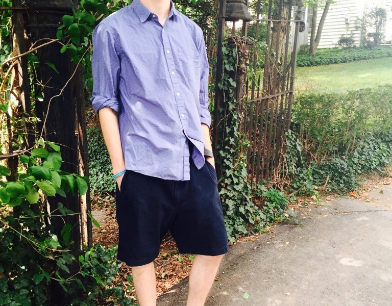 Okay, so first things first. The most important rule in creating a fashionable monochromatic look is pairing pieces in different shades of the same color. For example, this Fashionisto is wearing dark blue shorts with a lighter blue button-up. To take it to the next level, the blue print on his shirt is actually a blue shade that is not as light as the top and not as dark as the shorts (right in the middle actually). This is an awesome touch that makes the look that much more interesting.