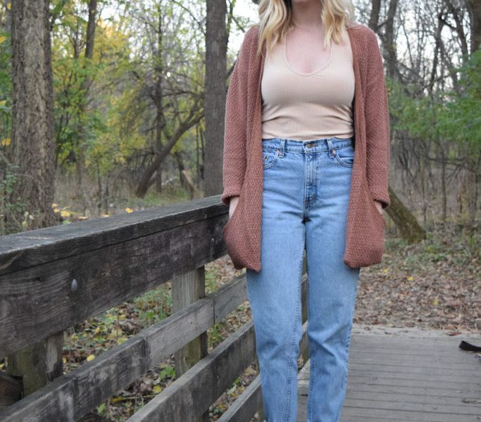 Even though this Fashionista is rocking this cardigan-style sweater, it’s still a sweater. That’s the thing about sweaters recently; they can be any style. Celebrities have been spotted wearing sweater dresses, college students are sporting oversized sweaters, and even Forever21 is selling sweater crop tops (although I’m not sure how much these will really keep you warm).