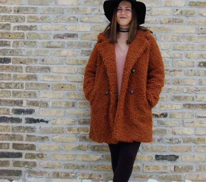 I’m a firm believer that money doesn’t equal fashion. I love finding knock-off pieces to create high-end looks for less. One of my favorite pieces for winter is this faux shearling coat from Forever 21, a dupe from many other expensive brands. It’s easy to throw on over a sweater and leggings for a fashionable way to brave the cold. Being from Wisconsin, finding new ways to stay warm AND fashionable is a must. This look also includes a dark lip and layered chokers, some of my favorite winter trends.