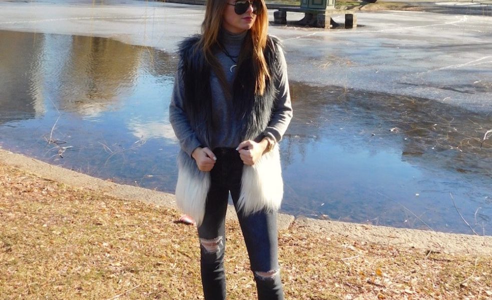 My personal style is a mix of edgy and staple pieces. I love to take classics and give them a little edge with an accessory or statement shoe. My fashion icons are Olivia Palermo and Gigi Hadid. Some of my go to pieces are ripped jeans, white T-shirts and a good leather jacket. When putting together an outfit, I like to start with a statement piece then build everything around it. In this outfit my faux fur vest was the statement and I paired it with grey tones that would not outshine that piece. All that was left to do was throw a beaded necklace for a little sparkle, grab my favorite sunnies and go!