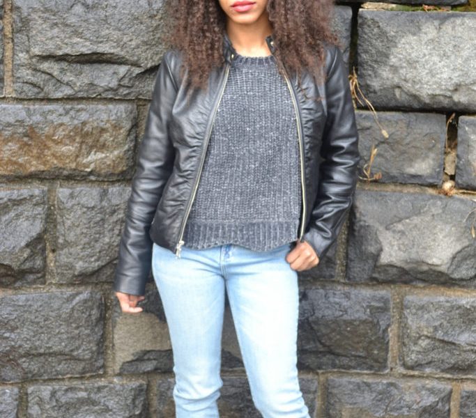 I draw style inspirations from the ’60s and ’90s era. The majority of my inspirations stem from the stylish individuals and groups that are within my surroundings. My toughest style question is, if I should wear all-black for that day. I believe black can be worn at any time. Minimal dressing, black denim, leather, gold jewelry, and gray for a pop of color summarize my usual everyday style. For this look I continued with my minimal dressing, pairing a Zara gray knit sweater with my only pair of light denim, girlfriend jeans. I finished the look with my black leather jacket and combat boots, Sephora reddish pink lip, and mirrored shades. I hope you all enjoy the look as much as I do!