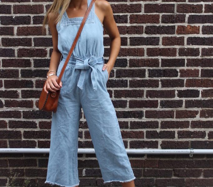 Denim is a classic that has always been an everyday symbol of style. Everyone’s favorite material is hotter than ever and is no longer limited to just jeans. I was on the hunt for the perfect pair of culottes for this fall, and when I came across this contemporary denim romper it was love at first sight. I was unexpectedly impressed with how flattering the jumpsuit looked on. The tied belt lands above my natural hips, which defines my waistline and gives me legs for days. Frayed edges and cropped hemlines are also a top trend in the denim department this year. The square neckline and white stitching add some extra detail to the jumper.