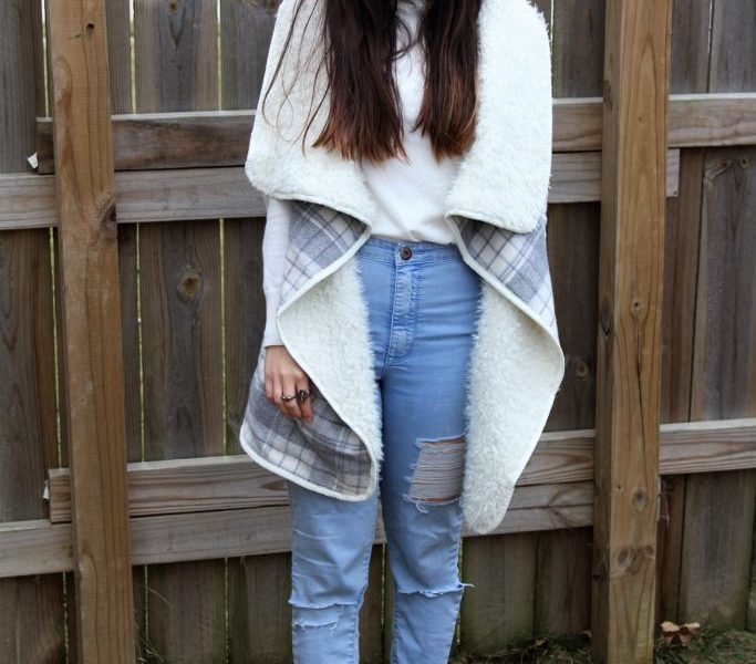 I paired my ripped jeans with a white turtleneck. The turtleneck and vest combination has been quite popular, so I gave it a try and wore my gray and white plaid vest over my turtleneck. As for the shoes, I went with my old pair of black ankle booties. These booties were my go to last year when I would be out and about. I always have a pair of shoes that I don’t mind to get dirty because I would never wear them on a special occasion. To spice up my whole look, I wore some cute rings and red lipstick.