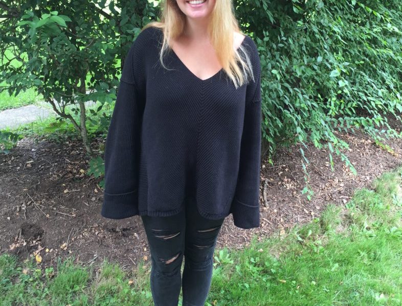 My go-to outfit any day would definitely be a pair of ripped jeans (either skinny or boyfriend), rainbows, a cute bralette, a baggy sweater and a scrunchie (I am constantly playing with my hair and different styles)—this totally encompasses my signature comfy/casual look.
