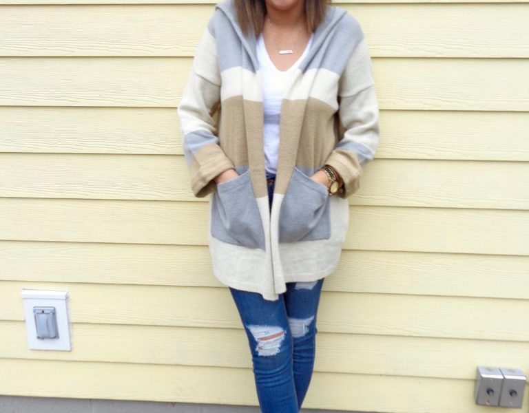 You’ll most likely find me rocking my favorite Adidas Superstars since they’re the perfect shoe for an on-the-go gal. My friends always tell me that I have a knack for keeping with the basics but somehow turning them into something unique. A plain white T-shirt is my saving grace when it comes to an outfit because it can be dressed up or down in an instant. I decided to make this look more comfy-cozy by throwing on my favorite oversized cardigan. The big pockets, soft material, and huge hoodie make it feel like you’re still wearing pajamas to class while looking effortlessly put together.