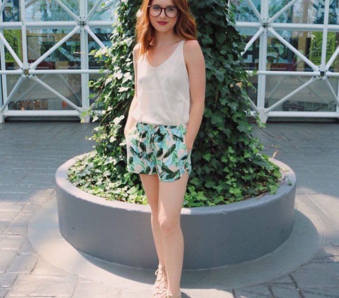 As for right now, I’m loving minimalistic outfits with a pop of color. For example, the outfit I’m wearing here consists of a cream colored tank top, bold shorts (which are also super soft and comfortable) and nude heeled sandals. This is the perfect combination to make it through these hot, end-of-summer days.