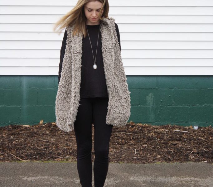 In this look, I am wearing all a simple, go-to all black outfit which includes leggings and a long sleeve shirt. Over it, I threw a super comfy oversized wool vest. To add something to the outfit I threw on an opal necklace, with a long chain. For my shoes, I chose a short, black boot. This is an outfit that I could throw on to go to class, hangout with friends, go to dinner, or essentially anything. I love choosing outfits that have so much flexibility, and can be worn for many different occasions.