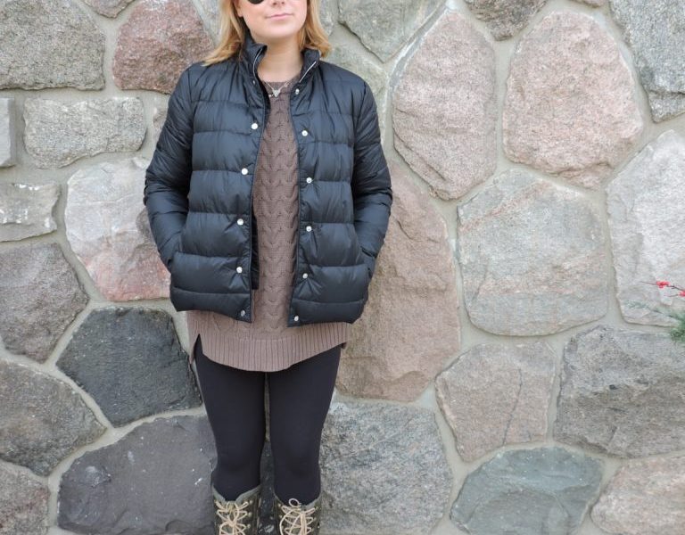 Going to school where snow gets deep and temperatures drop makes dressing in the winter hard. My favorite way to beat the snowy blues is by investing in cute sweaters and boots that’ll make a walk to class in a snow storm a little more bearable. This cozy outfit all starts with leggings; everyone has a pair (or 20) in their closet. These boots from SOREL ensure you have warm toes as well as making a statement! This pair of boots aren’t as clunky as some other winter boot options and the laces that go all the way up the boot make them really stylish. The sweater I am wearing is from Urban Outfitters. For me, details are everything; the elbow patches and knitting really bring this sweater to life. This jacket is my favorite piece I have in my closet right now! I adore this jacket because it is the winter version of the bomber jacket! The high collar makes sure your neck stays warm even without a scarf on. The sun can get brutally bright in the winter especially when there are mounds of snow outside, my favorite accessory to pair with winter outfits is my trusty aviator Ray-Bans!