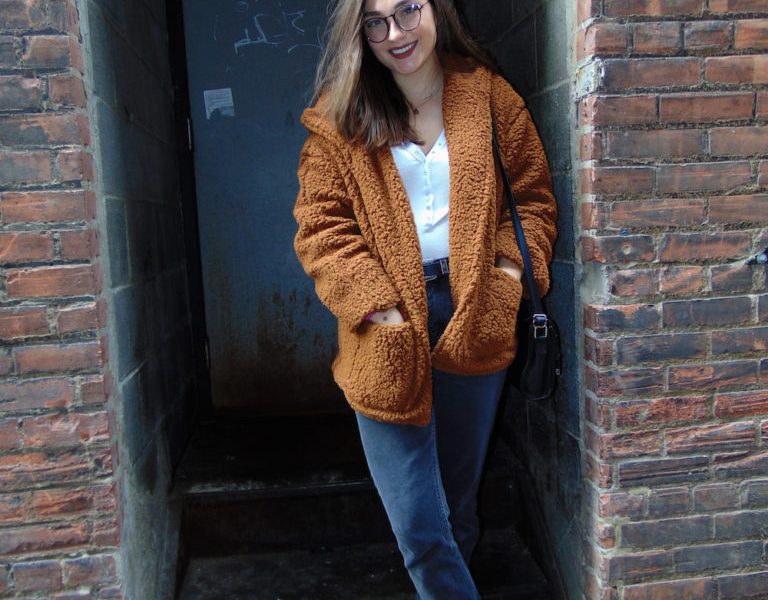 When I’m not running around campus, you can usually find me at my favorite coffee shop downtown, or curled up in bed with a warm cup of joe. If it isn’t already clear, I survive strictly off of 10 cups of coffee a day. My biggest fashion statement usually is my choice of a mug for the day but here, I am wearing a white snap up body suit that fits perfectly in my high rise, mom fit black denim. After a long search, I finally found this amazing orange toned, fur oversized jacket. This kind of outwear can be outfitted for almost any occasion you are headed to. These deep chestnut riding booties are great to wear in the winter time along with some cuffed jeans. And as always, for accessories I am wearing my rounded glasses, a bulky vintage belt, and a simple black crossover purse. I like to say that I have a grunge day-to-day style, but for most of us we change what we wear based on how we are feeling. Some days I may be feeling fabulous, while others all I need is an XL flannel and I am set for the day.