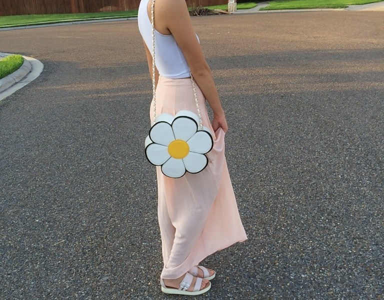 You can usually catch me wearing my favorite trends: flatworms with vintage inspired dresses or pastel co-ords. But since I’m finally officially on summer break, I’m a palazzo pant/sundress/strappy sandal wearing lazy individual who sunbathes on her free time. My favorite seasons are spring/summer, so naturally I wear my favorite styles until the last possible second and dread when autumn rolls around and it’s time to break out the sweaters. Some pieces I’m completely obsessing over are in Valentino’s spring 2015 ready-to-wear collection. I also have a newfound obsession with novelty bags, especially kate spade’s Garden Party collection—complete with snail, flowerpot and bullfrog shaped clutches. However, if you’re anything like me, you don’t have the funds to drop 300 dollars for a bag, so an alternative that satisfies my need for cute bags is Nila Anthony. My daisy bag has become a pretty big staple in my wardrobe.