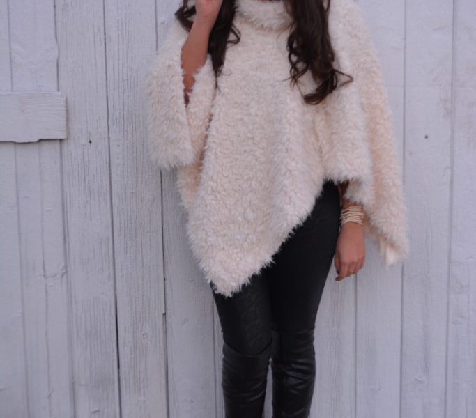 My style ranges from boho-chic to preppy to sporty cute (sports and I are a no go). Nine out of ten times you will catch me prevailing in outfits, my favorite color: white. White will forever be a staple in my wardrobe and I know it’s on a different spectrum to the famous black, but I believe both of these colors are so versatile. There are so many different shades of white to work with and so many looks can stem from this color. In today’s look, I’m wearing a cream faux fur poncho paired with leather baroque leggings and my leather over the knee boots. I chose to glam it up with with rose gold shades along with a cream and rose gold bracelet. This look is perfect for a warmer winter day and is very chic and comfortable!