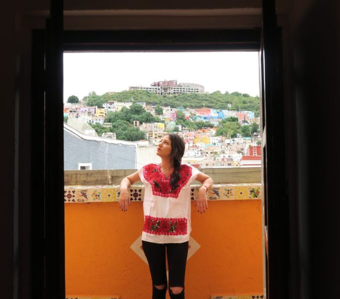 This outfit was from my latest trip to the beautiful city of Guanajuato, Mexico. I ‘am wearing my comfy high-top Converse, black skinnies with the knee slits, and a beautiful embroidered top that I picked up from an artisan market in the city of Morelia. I needed to add a pop of color to my outfit and the top was the perfect match.
