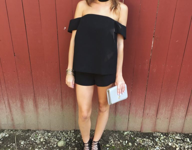 I decided to wear this all-black outfit because I like the chicness of it being simple yet dressy. I’m wearing my favorite new black choker, my proudest bargain romper from T.J.Maxx and my pair of black lace-up heels from LuLu’s, which are my more-affordable version of the oh-so beautiful Jeffrey Campbell’s. This outfit would be perfect for a night out on the weekend or for any special occasion.