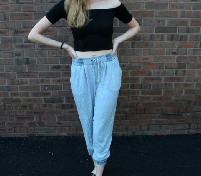 I’m so extremely excited to begin my third semester here at CollegeFashionista and can’t wait to share outfits that inspire me throughout the semester. For this first post, I decided to really showcase my personal style with a pair of baby blue joggers, a simple off-the-shoulder black top, these amazing loafers which I find to be the best transition season shoe and my favorite sunglasses. To add a little something extra, I included skinny scarf that I turned into a thick choker. I love adding something unique to an outfit that can be so basic.