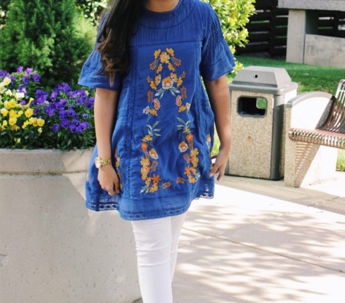 To end, I want to show you all one of my favorite outfits that I like to wear that is dressy, yet still modest. I love this short dress from Free People because of all the beautiful embroidery on it. But, since it is pretty short, I decided to pair it with some white jeans to make it look like more of a tunic. To finish off the outfit, I decided to pair it with my favorite peep toe sandals from Steve Madden. They have a chunky heel, so they are perfect for those of us who love wearing heels, but hate the way they feel. Hope you all have a #rad semester this fall season!