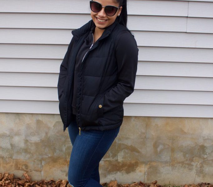 I tend to dress casual because I spend all my time getting ready doing makeup and I run out of time. So like today that has also happened. I used the Kylie Cosmetics Burgundy Palette to create my eye look; I also used the Kylie Exposed matte lipstick. In my winter casual mood I am wearing a black neoprene sweatshirt with a black vest to give me a little more warmth. I styled my outfit with ripped jeans that I cuffed at the bottom, and I threw on a pair of white vans to complete my look.