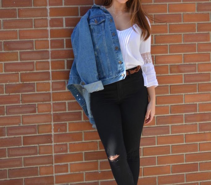 This outfit exemplifies my style because it is composed of super simple pieces—denim, booties, simple jewelry, and a beautiful lip color—that combined make a great outfit. I’m a huge fan of denim (it’s so versatile!)—jeans, jackets, blouses, you name it—if it’s denim, I love it. This denim jacket is an all-time favorite of mine because of the beautiful wash and perfect length. Another shining component of this outfit are the booties, which I particularly love because of the zipper detailing along the top line of the shoe that takes them from standard to exciting. For me, jewelry is all about simplicity and that’s why I love chokers—they instantly add edginess to an outfit without any effort. This simple, put-together-yet-edgy look is exactly what my style is all about.