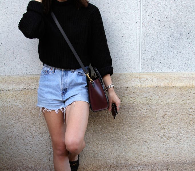 All that being said, my style is constantly changing but always tends to remain on the simpler side. On a normal day you’ll probably see me in a white T-shirt paired with either jeans or shorts, and my favorite black Gucci loafers. For this look, I kept things very simple and wore a black mock neck sweater with vintage Levi cut-offs and my Céline purse.