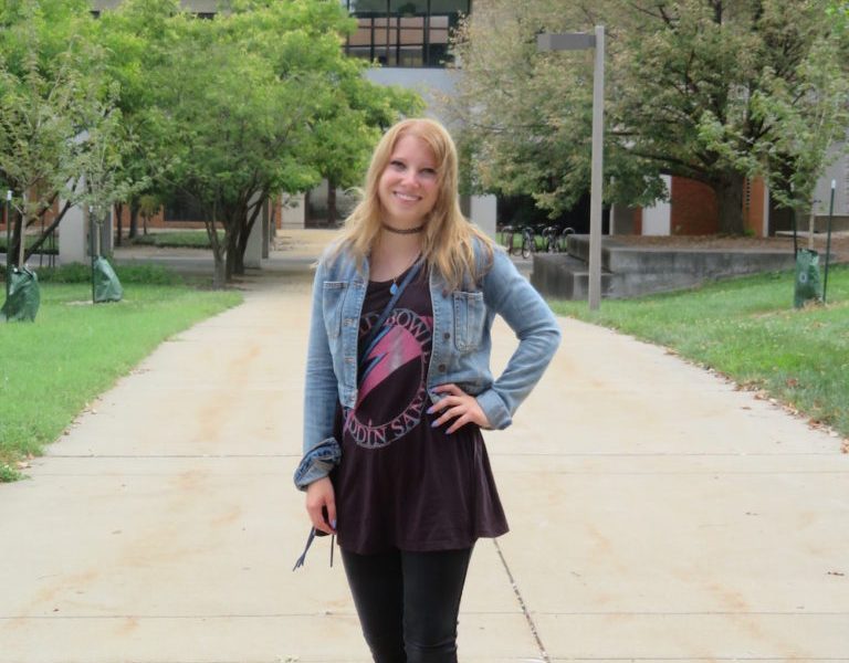 In this outfit, I wore black skinny jeans, my favorite David Bowie shirt and gold sandals. The cropped jean jacket works well with the longer length of the shirt and adds volume to the look while the fringed purse brings a bohemian vibe. I added a shimmering gold necklace to match the sandals as well as my favorite black tattoo choker. With a new school year coming up, I figured it was time to add some new twists and changes to my style, and I realized that adding something as simple as a choker can kick an outfit up a notch. Chokers bring on a sense of edginess and can make any outfit become bolder. Plus, who doesn’t love the ’90s?
