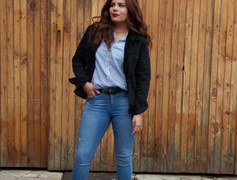 For this look, I went for my essentials. The go-to denim jeans, comfy button down, and statement booties. Together they make for an easy but still cute outfit. The faux fur jacket finishes the look off with a bit of edginess.  Add jewelry for extra sparkle and lipstick for a pop of color.