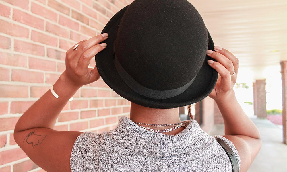 I am not the only buzzing SCAD Bee on campus with the amazing opportunity to scout Fashionistas/os. I am so glad I get to be a part of the CollegeFashionista team this fall along with all the other SCAD Atlanta Style Gurus that i’ll meet along the way. Considering fall is may absolute favorite season for fashion I am so ready to get the school year started and to see how my classmates rock their layered looks. It is still way too hot to pull out scarves and boots but I am itching for fall fashion. I couldn’t help myself so I chose to layer this heathered turtleneck top with a loose sleeveless dress underneath. This way still get the effect of a layered look without packing on the heat. I kept this monochromatic look sporty by finishing my look with black and white Nikes.