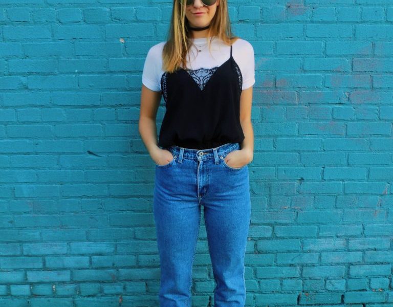 Although many find the undergarment trend intimidating, whether you’re heading to brunch, a concert or a party there’s a slip style suited for every occasion. To ease in, layer with a classic white T-shirt to create a reasonably casual daytime look, like I did here. Or, if you’re feeling daring, graphic T-shirts perfectly harmonize with silk spaghetti strap dresses to construct a sleek rockeresque look.