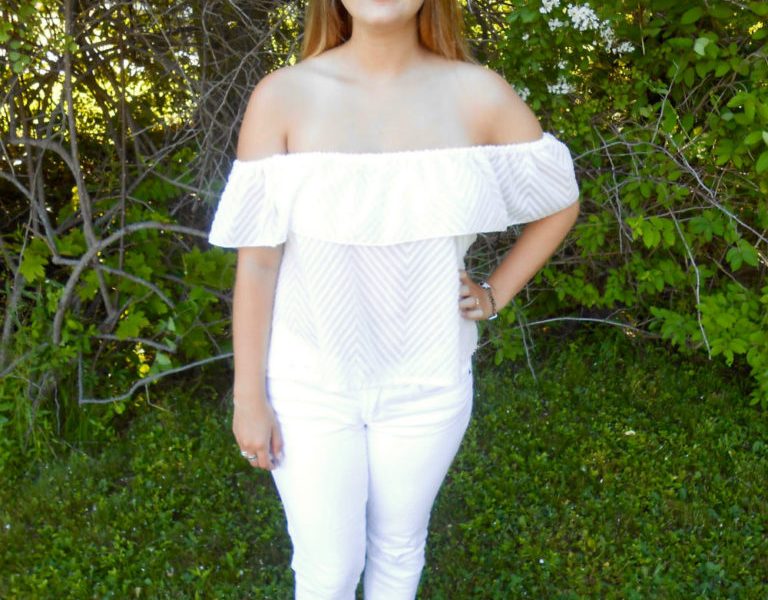 I translated this Balenciaga trend simply and effortlessly because this trend could not be easier. I am usually the girl that loves a pop of color in a look, but for this one I stuck to all-white with some gold accents. The foundation for this look was a pair of white jeans, which every girl on this earth needs in their summer wardrobe. This summer staple can automatically dress up a look, but they are as easy to throw on and as comfy as regular blue jeans. I took a nod from the light and airy linen garments in the Balenciaga show when I pulled this top out of my closet. My blouse also incorporates the off-the-shoulder trend if you are going for some Fashionista bonus points. If you have any ounce of prep in your body, gold Jack Rogers are an absolute must-have this summer. On second thought, they are a must every summer because this is a classy and timeless shoe! I also sported a gold bracelet and antique gold ring. All white everything is everything this summer and will have people telling you that your look is “outfit goals.”