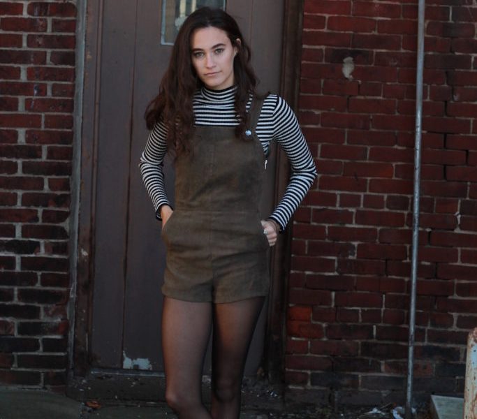 As soon as I laid eyes on the army green, suede overalls, I knew I had to purchase them. They were a clothing item that I had never come across before, and I didn’t own anything like them. This item definitely adds character to my closet. They are so versatile, being appropriate for both winter and summer. You can dress this outfit down by adding some sneakers or make it a bit dressier with sock booties, as I did here. I added a striped turtleneck to give the outfit a little more character and shear tights to make it more appropriate for the colder weather. I decided to keep the accessories simple, sticking to my go-to pieces. I chose a vintage ring and two beaded bracelets. The suede, black booties also give this look a little more sophistication.