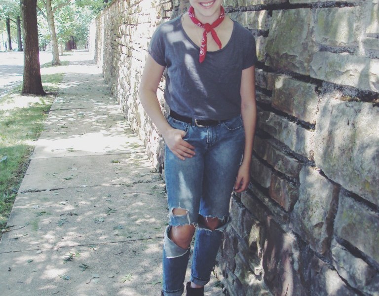 As for piecing together my own look, the 6397 pre-fall 2015 collection was a great starting point for showcasing my casual side. I began by pairing my favorite pair of boyfriend jeans with a slouchy T-shirt, keeping in mind to play up the tomboy look through the shapelessness of the shirt and pants. I decided to opt for a gray shirt to keep up with the muted color palette and let the jeans take center stage—I mean, I couldn’t rave about boyfriend jeans for an entire article and not show them off! The only catch to this look was being mindful not to be too casual, or else I risked looking like a little, slouchy rain cloud. To avoid looking frumpy, I played up the miscellaneous pops of red scattered throughout the collection with a fun bandana to add some color and create the illusion of a higher neckline as seen via turtlenecks and popped collars. To seal the deal, I topped the look off with a pair of simple ankle booties to add height and accentuate the cuff in my jeans.