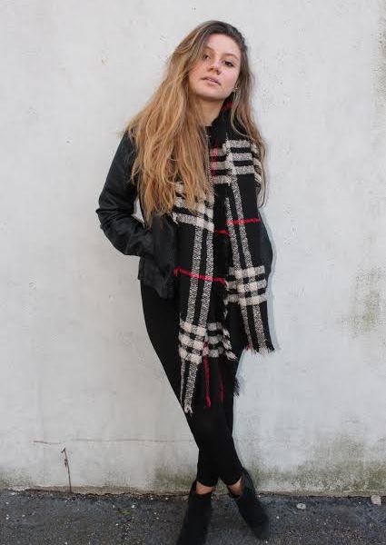 I decided to channel my inner fall flair by bringing out my leather jacket. I combined it with my black leggings and booties. Like I said earlier, dark colors are my favorite, preferably black. I decided to pop some color in my outfit by adding this black stripped scarf. The red and beige on the scarf give it the perfect touch of color not making the outfit look simple and boring. Under my leather jacket, I wore my half arm sleeved black shirt which has such a nice bell cut to it on the arms. Last but not least, I added my black and silver chain purse to complete my outfit. I have recently become a huge fan of small purses. They’re small, easy and convenient to fit anything you need if you’re not much of a bag holder and also gives your outfit a RAD look.